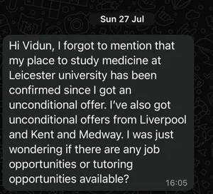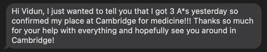 Hi, my name is Vidun Wedagedera, a 4th year Medic at Cambridge and founder VW Schools - where we help students secure places at their dream university.